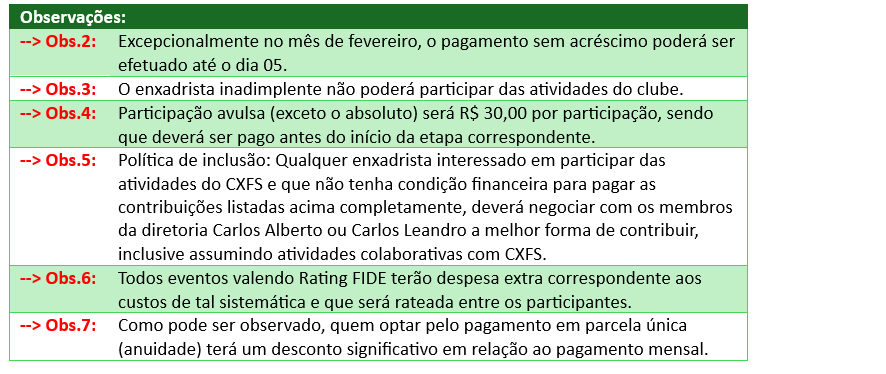 Anuidade/mensalidade 2026 Get fit with us Compartilhar este conteúdo Abre em uma nova janela X Abre em uma nova janela Facebook Abre em uma nova janela Pinterest Abre em uma nova janela LinkedIn Você também pode gostar Campeonato Baiano de Absoluto de categorias 31 de março de 2025 Campeonato Feirense de Xadrez Blitz (3+2) 2026- RESULTADOS e ETAPAS 8 de fevereiro de 2026 CAMPEONATO FEIRENSE DE XADREZ RÁPIDO (10+5) – ETAPA 6 (19.07.25) 19 de julho de 2025 Deixe um comentário Cancelar respostaComentárioDigite seu nome ou nome de usuário para comentar Digite seu endereço de e-mail para comentar Digite o URL do seu site (opcional) Salvar meus dados neste navegador para a próxima vez que eu comentar.