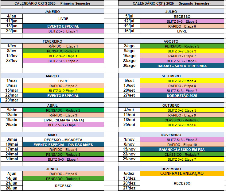 2. Calendário 2025