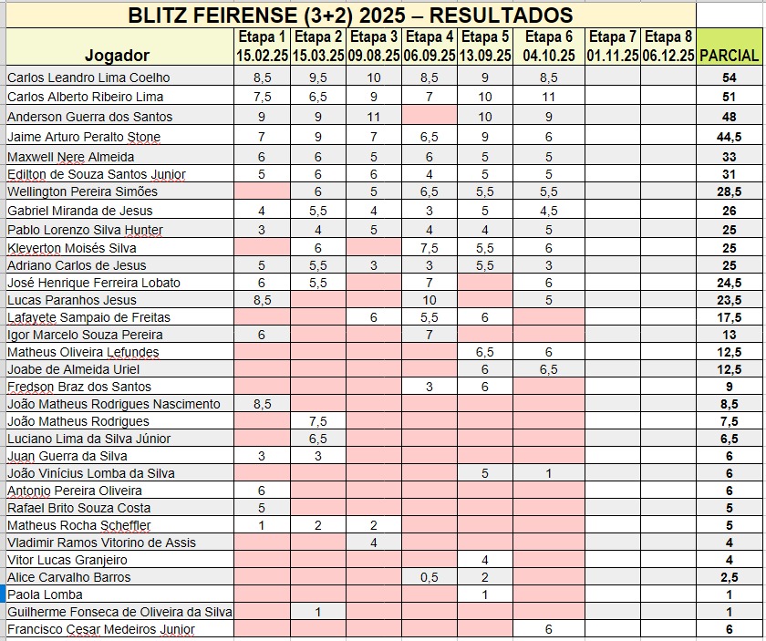 Blitz 3+2 – ETAPA 1Blitz 3+2 – ETAPA 2Blitz 3+2 – ETAPA 3Blitz 3+2 – ETAPA 4Blitz 3+2 – ETAPA 5Blitz 3+2 – ETAPA 6 Get fit with us Compartilhar este conteúdo Abre em uma nova janela X Abre em uma nova janela Facebook Abre em uma nova janela Pinterest Abre em uma nova janela LinkedIn Você também pode gostar Aula do projeto XADREZ NAS ESCOLAS – 29.03.25 30 de março de 2025 Campeonato Feirense de Xadrez Rápido(10m+2s) 2025 – Etapa 9 11 de outubro de 2025 Campeonato Feirense de Xadrez Blitz (5m+3s) 2025 – Etapa 8 9 de novembro de 2025 Deixe um comentário Cancelar respostaComentárioDigite seu nome ou nome de usuário para comentar Digite seu endereço de e-mail para comentar Digite o URL do seu site (opcional) Salvar meus dados neste navegador para a próxima vez que eu comentar.