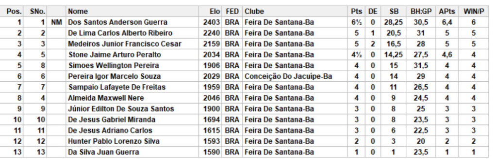 Evento: Campeonato Feirense de Xadrez Blitz (5m+3s) 2025 – Etapa 7