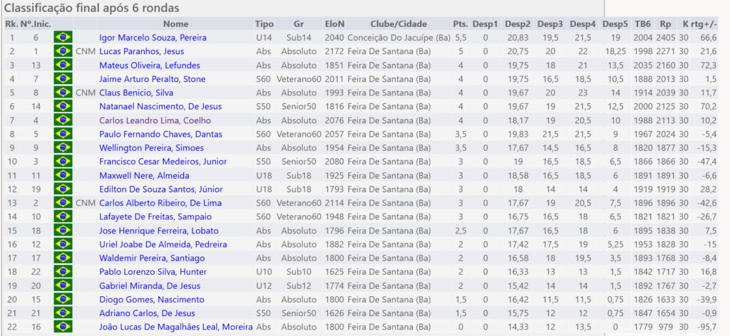 Arbitragem: NA Silva, Kleverton Moisés – ID FIDE: 22747788
